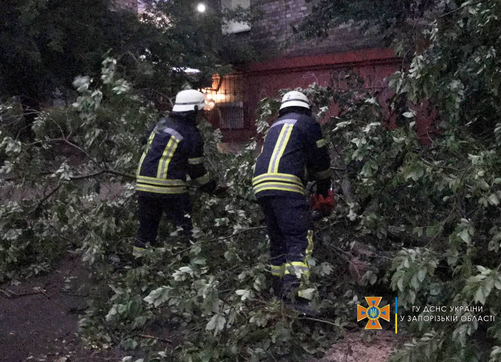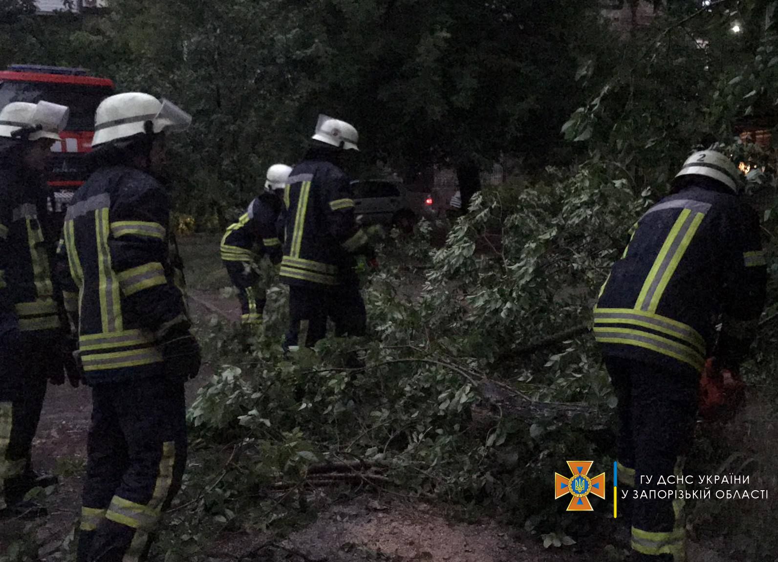 Рятувальники виїжджали на 6 викликів у Олександрівський, Комунарський, Вознесенівський та Заводський райони. Дерева падали на проїжджі частини та автомобілі. Повідомляється, що ніхто не постраждав.