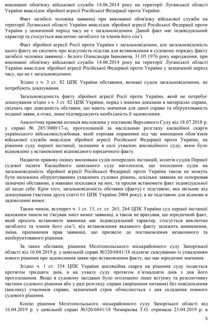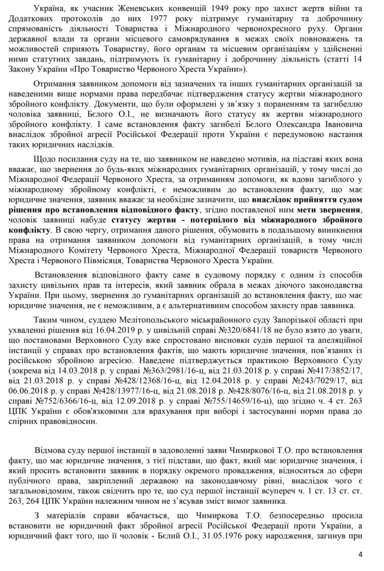 Нагадаємо, 16 квітня, всю Україну ошелешила новина, що у м. Мелітополі суддя Юлія Горбач під час розгляду заяви про встановлення факту загибелі Бєлого Олександра на «Іл-76» при виконанні військової служби в м. Луганську внаслідок агресії РФ, вдові чоловіка відмовила.