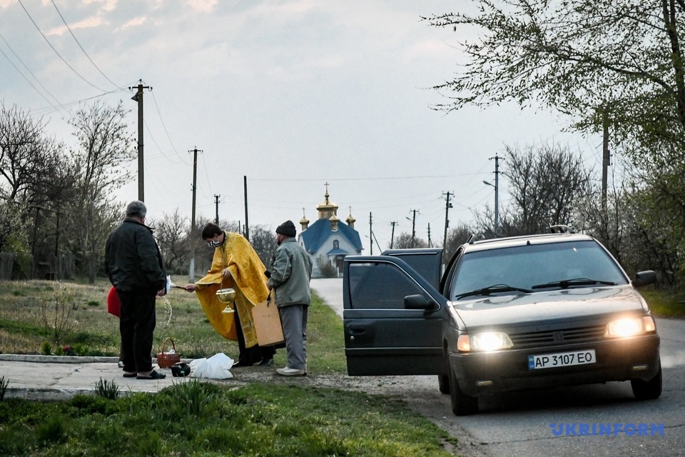 У зв’язку з карантином Великодні служби в церквах Запорізькій області проходять без вірян. У деяких селах регіону освячення пасок проводили на вулицях біля будинків. Про це повідомляє «Укрінформ».