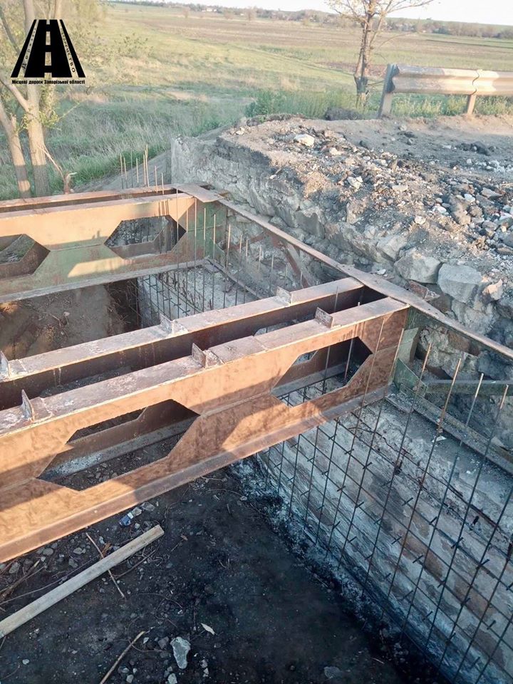 Повідомляється, що на об’єкті завершено армування балок прогонових будов та каркасів для підсилення опор. Почали встановлювати опалубки.