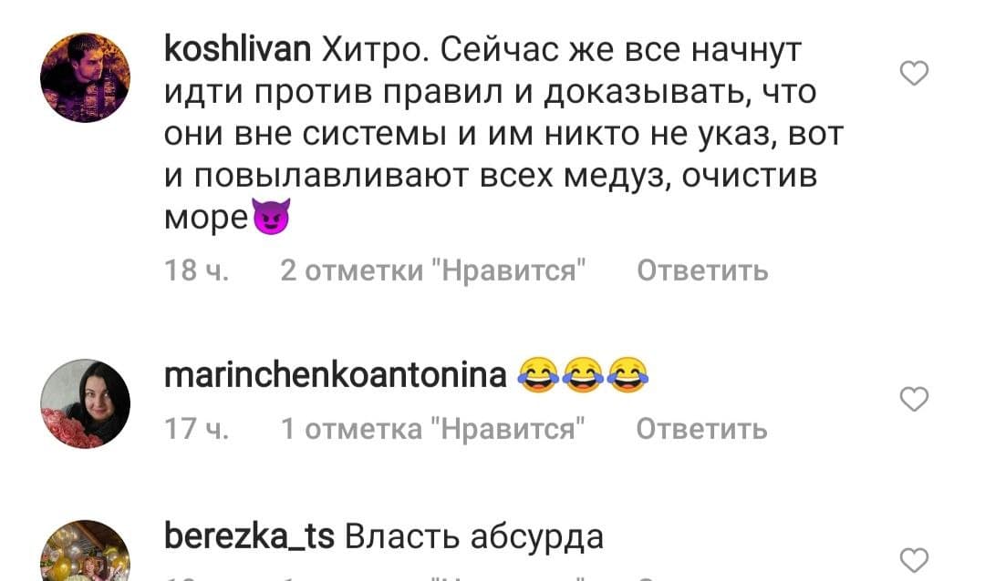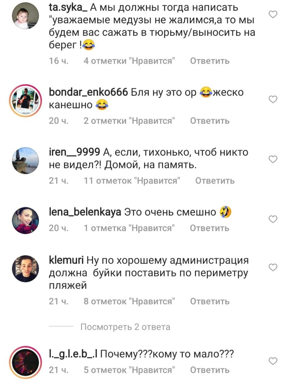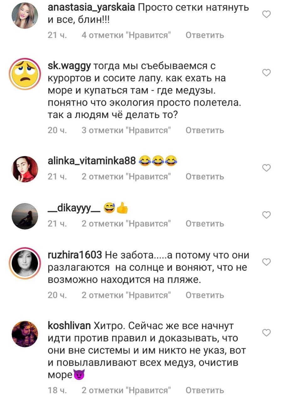 Втім, медуз виносять не тільки люди, а повсякденні хвилі. Багато людей прокоментували подію як небажання місцевої влади створювати умови для нормального відпочинку. Окрім того, що медузи жалять, відпочивальники й самі не відчувають задоволення купатись посеред маси морського желе. Скаржаться, що в такому випадку краще взагалі не їхати, оскільки курортна сфера владу не цікавить.