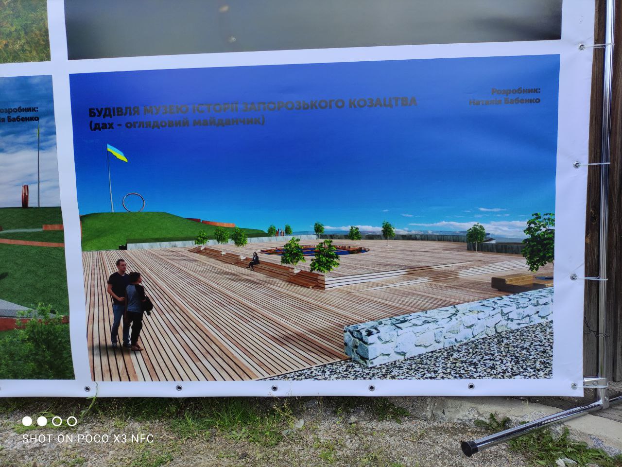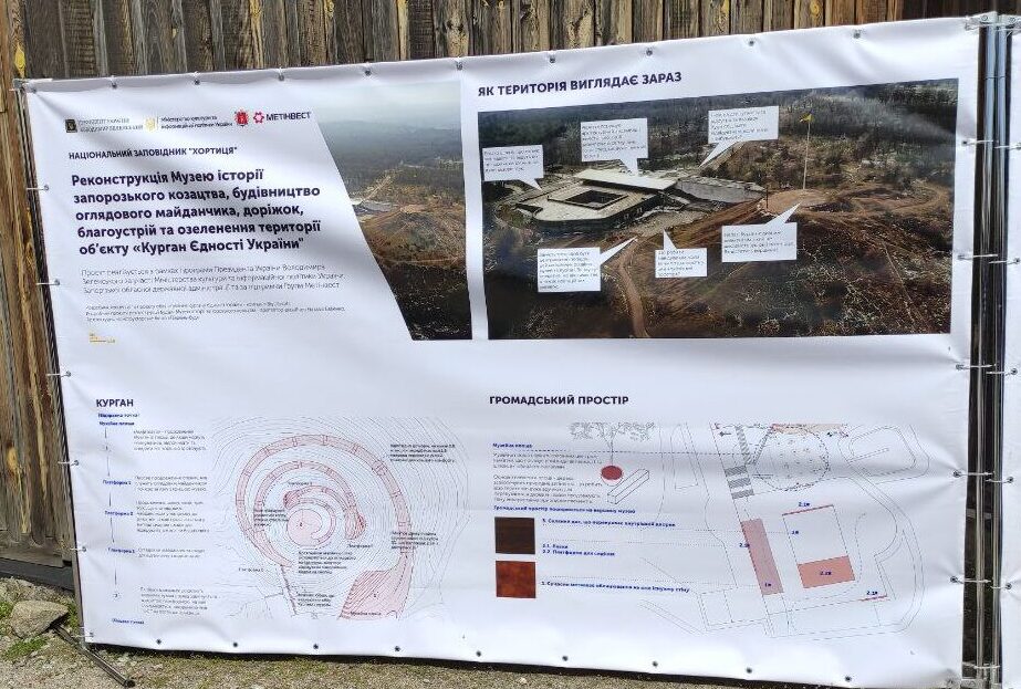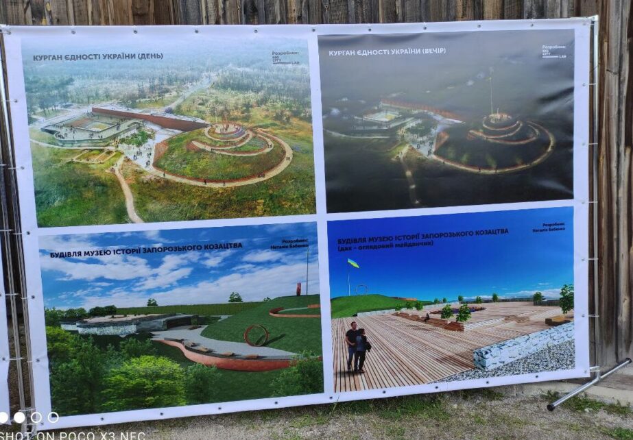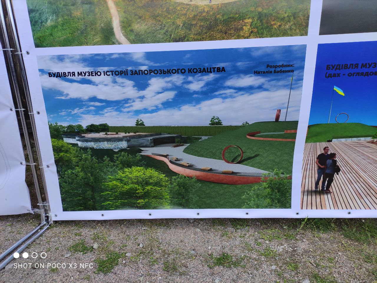 «Сьогодні вже розпочато перший етап розбудови музею, козацького кола та кургану, на який ми всі разом підіймались. Обласний бюджет підтримав перші кроки по фінансуванню екологічних заходів на Хортиці та найближчим часом ми побачимо серйозні зміни. На стендах, які ви бачите, відображено ескізні проєкти реконструкції. Курган біля музею буде облаштовано пандусами та підйомниками. Також облаштують оглядовий майданчик, реконструюють флагшток — один з найвищих в Україні. Все це поєднається з мабутнім музеєм, в якому використовуватимуться лише екологічні матеріали, для того аби він перестав бути бункером, а став музеєм 21-го століття«, — зазначив гендиректор заповідника Хортиця Максим Остапенко.
