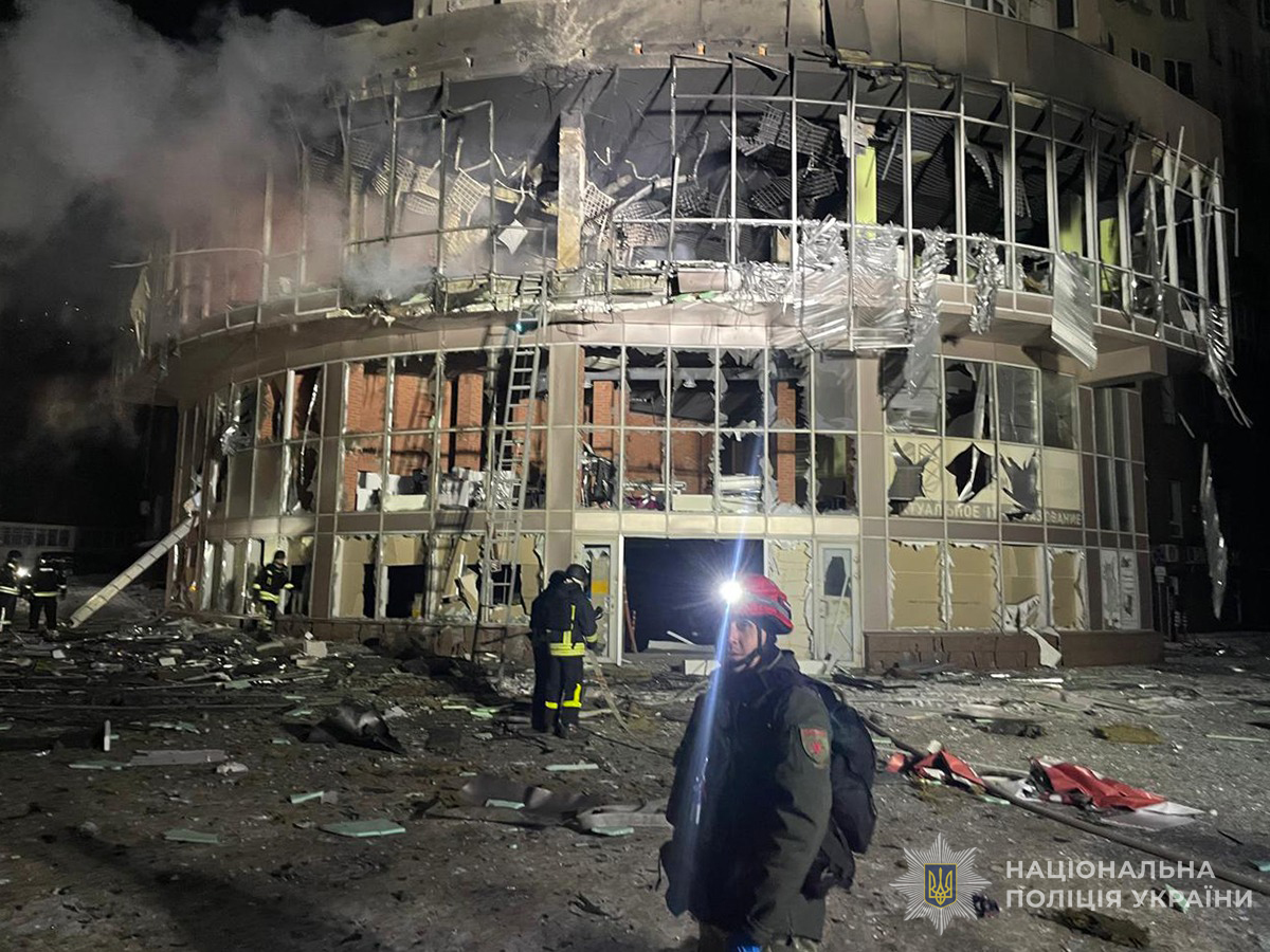 Друга атака – близько 02:00 2 січня. Внаслідок удару спалахнув торговий центр. Рятувальники ліквідували пожежу, сапери ДСНС обстежили територію на наявність небезпечних уламків безпілотників.