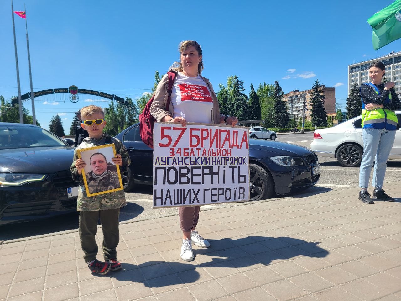Учасники акції у Запоріжжі просять світ вплинути на те, щоб українських військовополонених обміняли.