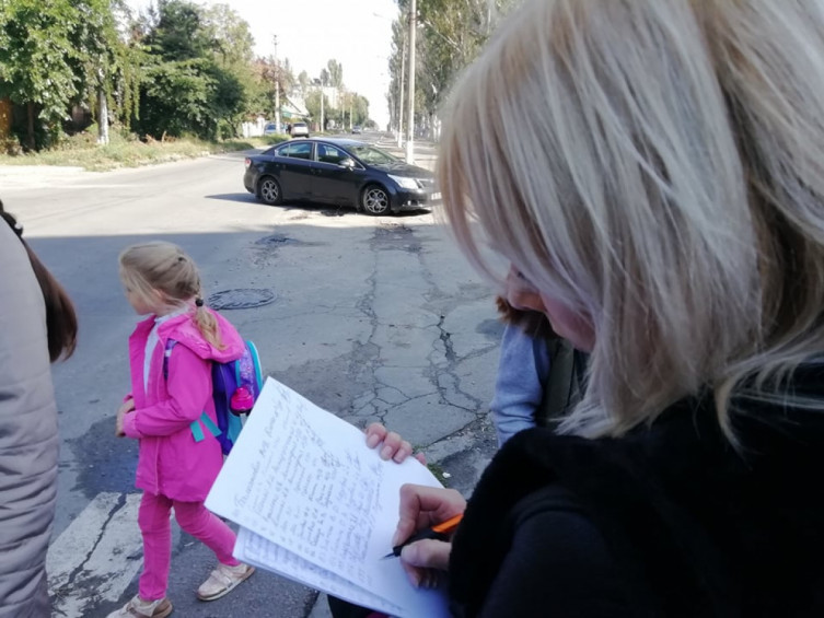 Учасники акції вимагають від голови Комунарського району дій. Щоб на даній ділянці дороги з’явилися лежачі поліцейські. Або ж готові вислухати альтернативні методи. Головне – безпека дітей.