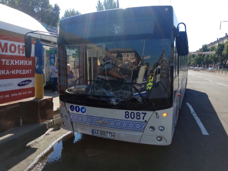 У автобуса «МАЗ» было повреждено лобовое стекло. К счастью обошлось без жертв.