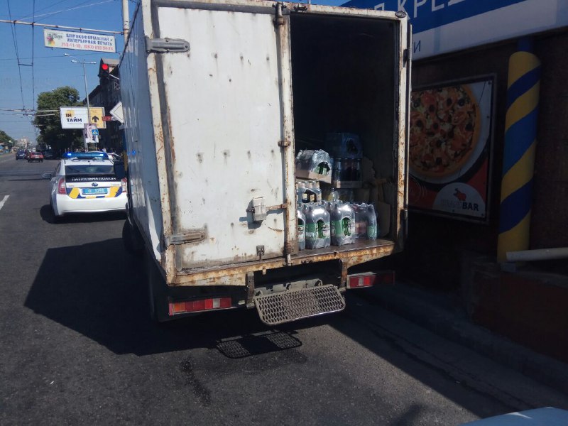 Судя по фото, дверь грузовика распахнулась и на асфальт выпало несколько бутылок пива. Тара разбилась и спиртное разлилось по дороге, образовав небольшую алкогольную лужу.