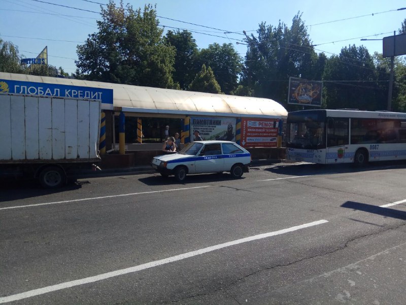 Сегодня утром рядом с остановочным комплексом ТЦ «Украина» муниципальный автобус врезался в грузовик, который перевозил пиво.