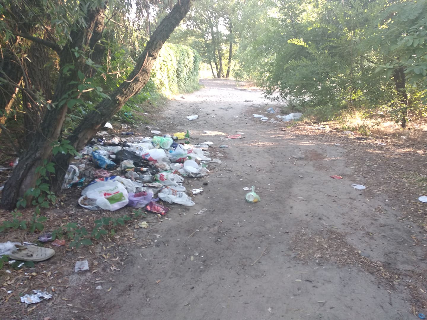 Влітку запоріжці вибираються на пікніки до берега Дніпра. Деякі з них забувають після себе забирати сміття, забруднюючи таким чином навколишнє середовище.