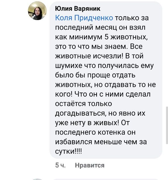 Місцеві мешканця в коментарях під дописом жінки розповідали, що часто бачать як чоловік шуукає тварин в соціальних мережах і вже ніби-то відомо 5 випадків.