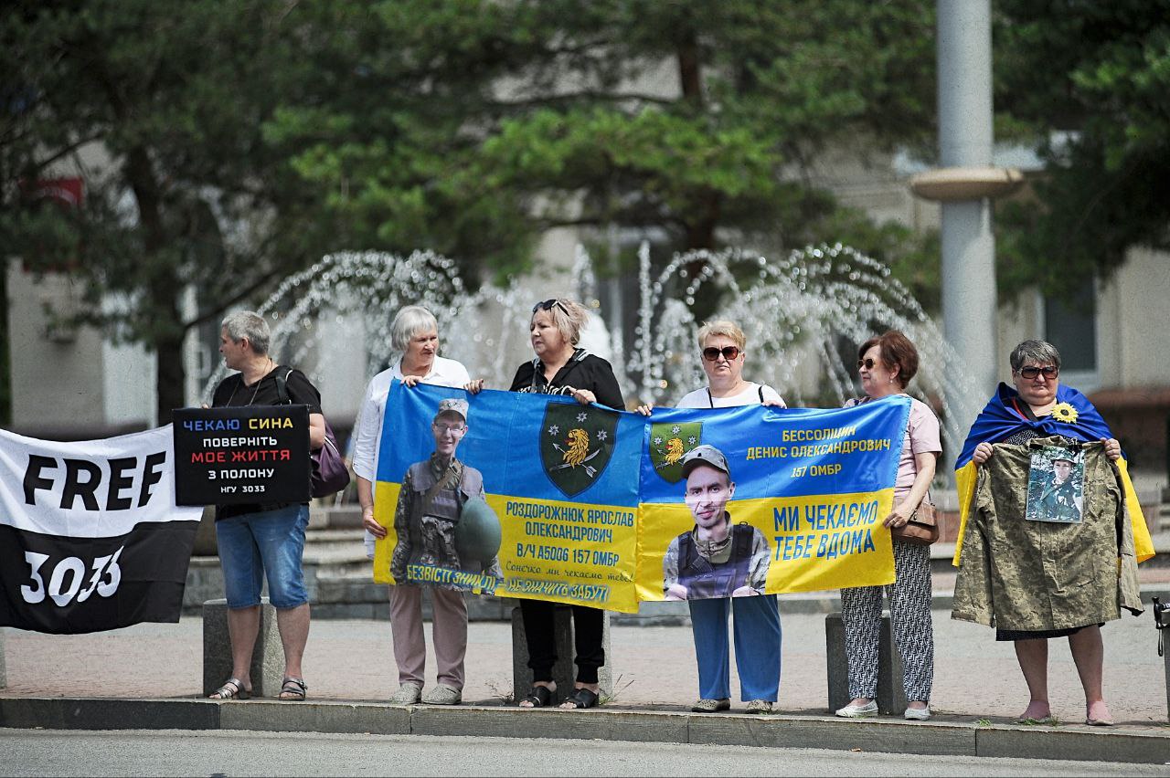 «Чекаю сина, поверніть моє життя», «Поверніть наші серця з полону», «Росія вбиває в полоні» — з такими закликами вийшли запоріжці посеред міста.