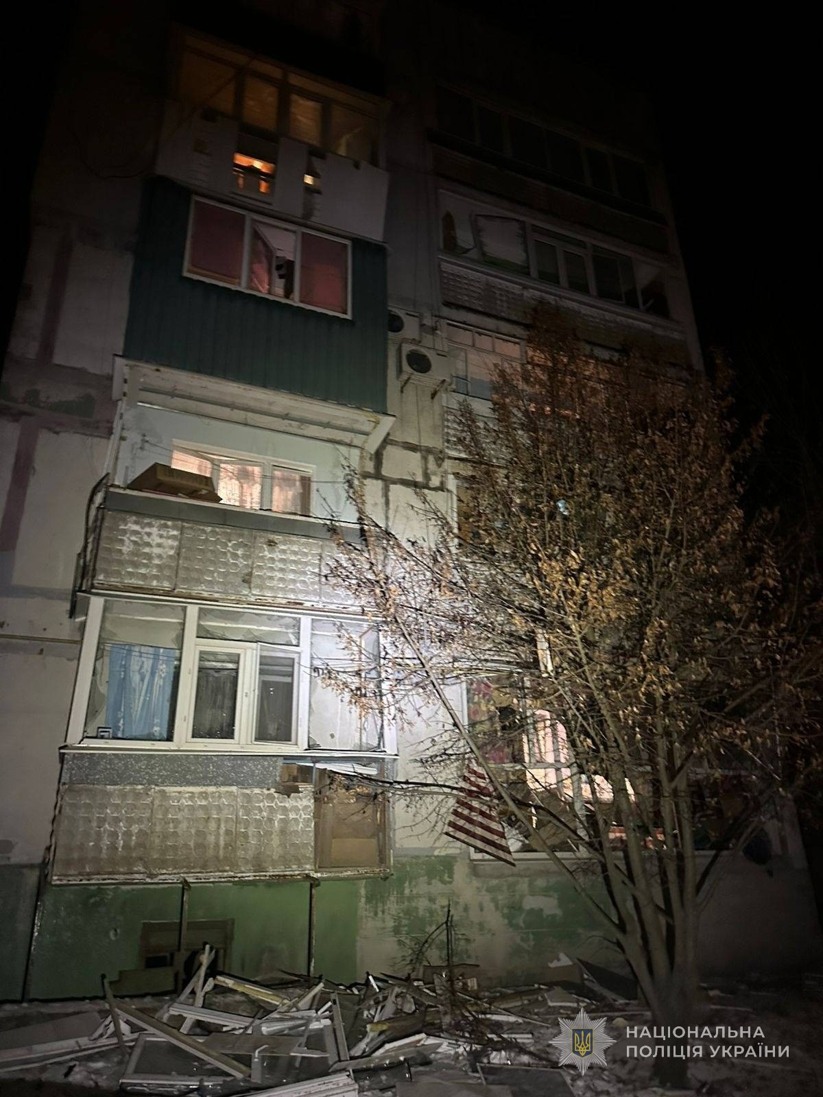 Загалом до поліції надійшло 90 повідомлень про руйнування об’єктів цивільної інфраструктури. У результаті ворожих атак пошкоджені та зруйновані багатоквартирні і приватні будинки, прибудинкові території, заклад освіти, гаражні приміщення та автомобілі.