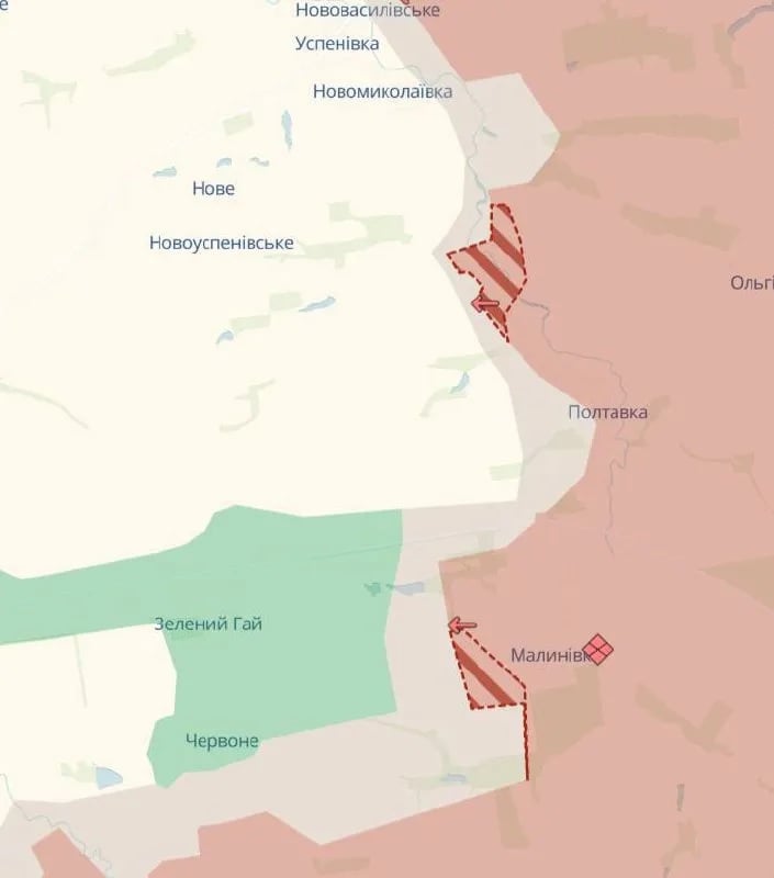 DeepState уточнює, що ворог закріпився на нових позиціях у районі населених пунктів Охотниче та Малинівка.