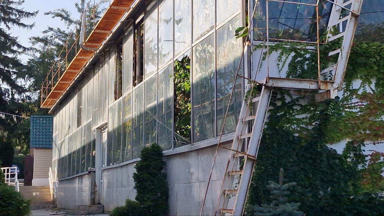 У старих теплицях вибито майже всі вікна. У зимовому саду постраждало сім великих вікон, на господарських будівлях вирвані двері та вибиті шибки. Пошкоджені й технічні приміщення.