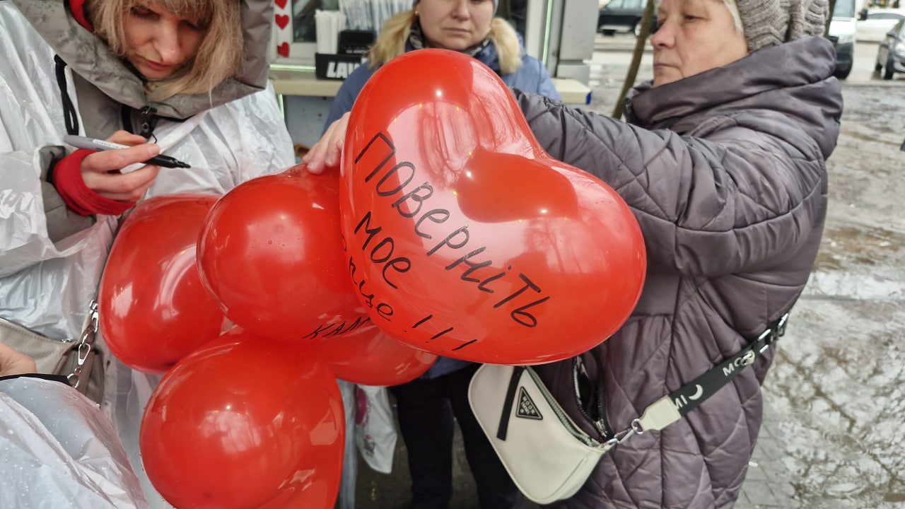 «Сьогодні, в День закоханих, ми вийшли на щотижневу акцію, щоб нагадати всьому суспільству, нашій владі та всьому світу про наших полонених. Нагадати, що в полоні немає свят, що наші серця в полоні і що наші полонені не забуті. Ми не можемо сидіти вдома і мовчати. Тому ми виходимо в центр міста і нагадуємо нашому суспільству про наших полонених, які вже четвертий рік знаходяться в російських катівнях, нагадуємо про наших безвісти зниклих. Наша частка серця знаходиться разом з хлопцями та дівчатами в полоні. Зараз ми дотримуємося правил безпеки. Ми не можемо під час тривоги розгортати, на жаль, прапори, плакати, тому наша акція називається ‘Мовчазна'».