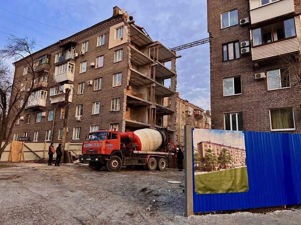 Будинок на вул. Незалежної України, 71 розташований поруч із п’ятиповерхівкою на Незалежної України, 67, де з 2023 року триває відбудова.