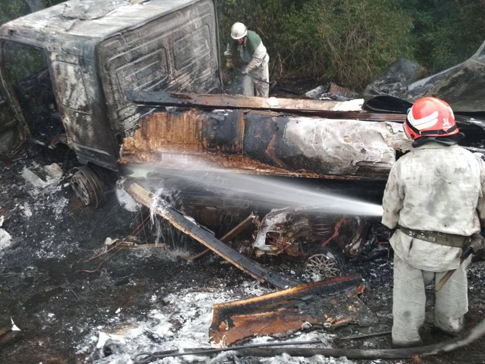 На место прибыли спасатели ГСЧС, они ликвидировали пожар и смыли с асфальта разлившееся горючее. Тело водителя пришлось извлекать из покореженного авто с помощью специнструмента.