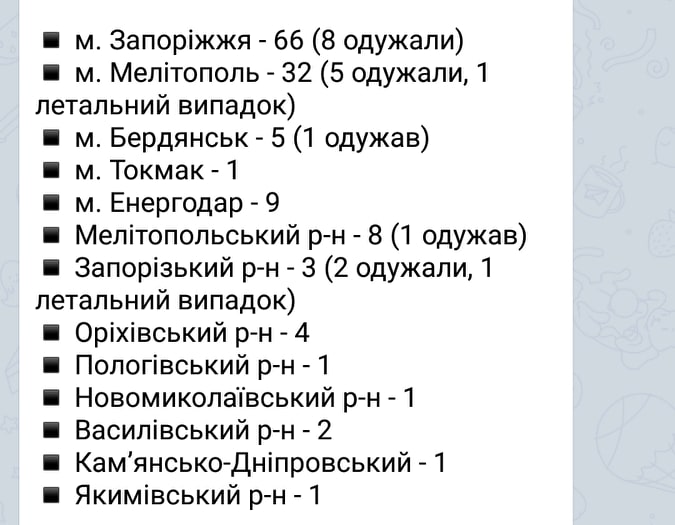 В області продовжують фіксувати нові випадки коронавірусу, про це повідомляється на офіційному Телеграм-каналі COVID-19. Запоріжжя. В МОЗі висунули припущення, що через порушення карантину на Великдень, через 5-10 днів кількість хворих збільшиться.