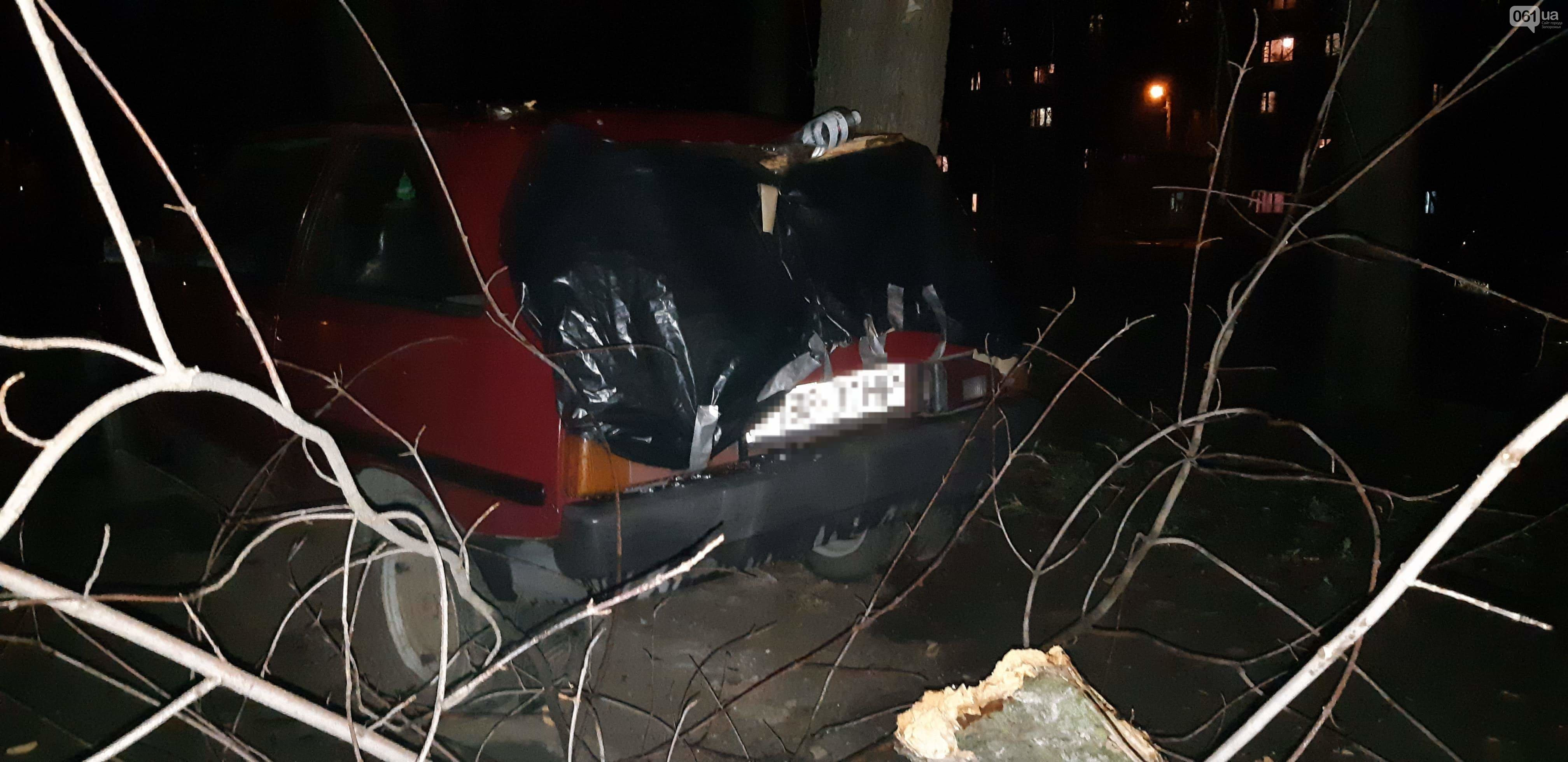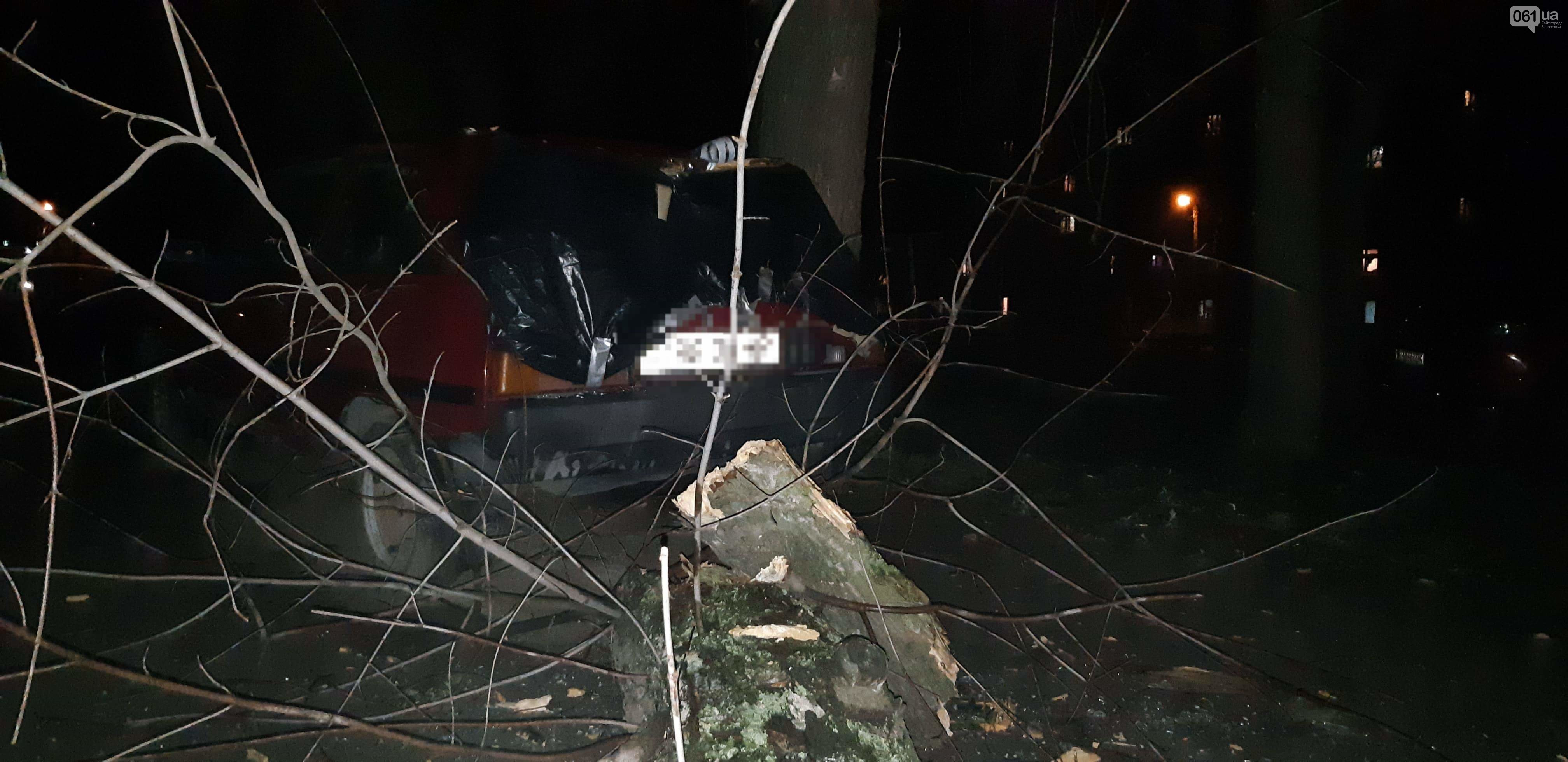 Загалом сталося декілька випадків. О 18:40 на вул. Космічній 130, б впало дерево на припаркований автомобіль. У «Таврії» пошкодився дах та вибите заднє скло, пише 061.
