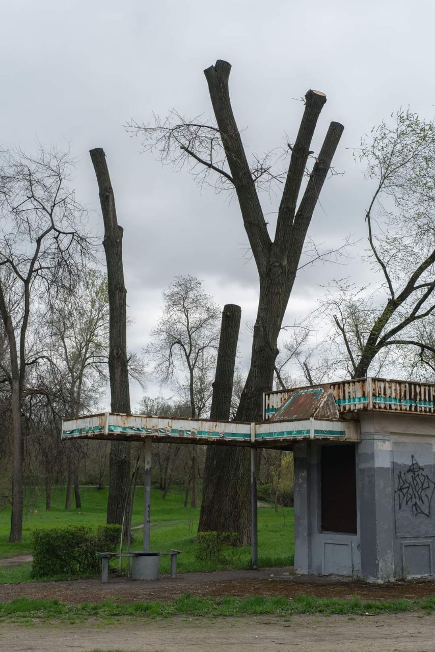 Звернув увагу, що з деревами у парку трапилося лихо, їх обрізали, залишили без крон!