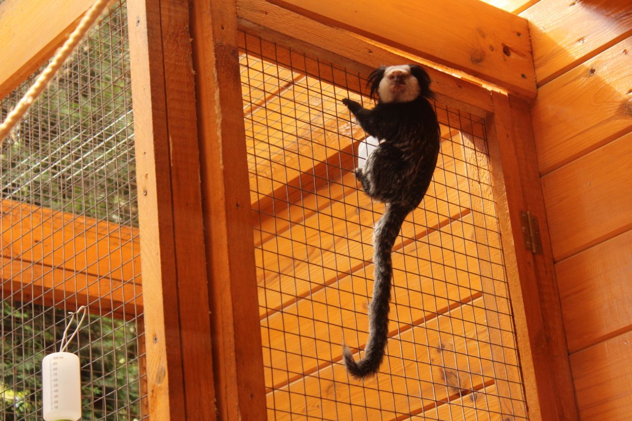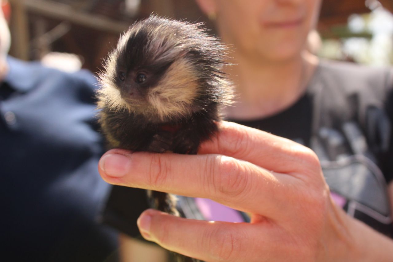 А ось ті самі тамарини — хлопчик та дівчинка. Зараз вони удвох поміщаються на долоні. Їм всього 18 діб, в майбутньому вони стануть трохи більшими за розміром — будуть трохи більші за долоню дорослої людини, а голівка стане біленькою. Після народження на власній спині малечу повинен носити батько, втім голова цієї родини чомусь відмовився доглядати за дітьми.