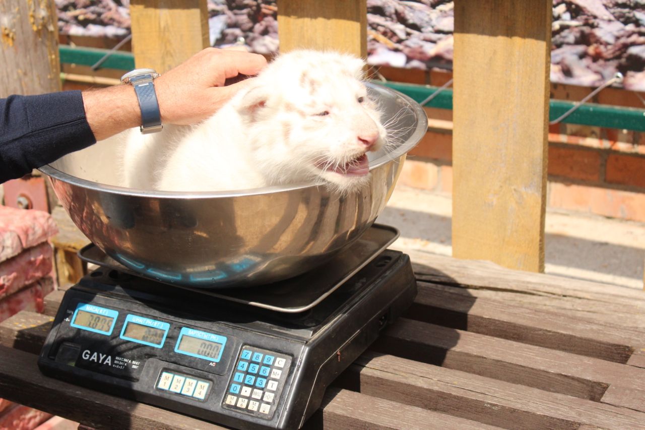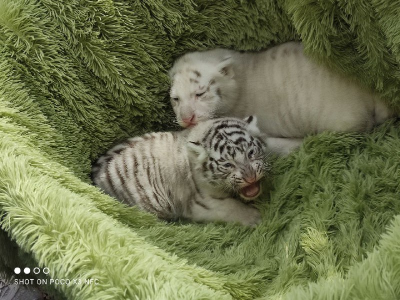 У березні в родині тигрів народились двоє тигренят: хлопчик та дівчинка. народилися вони на світанку з різницею в 40 хвилин. Днями малечі зробили щеплення, а учора вперше вивели на прогулянку та зважили. Інтрига тривала не довго: біленький хлопчик зараз важить 6, 200 грамів, а дівчинка 5,100 грамів. Директор зазначає, що самки завжди трохи менші за самців, тому вага повністю відповідає віку. Батьки малюків — Француз та Азіра, передали дітям цікавий окрас та характер: хлопчик біленький з ледь помітними чорними смужками та спокійним норовом, а дівчинка народилась темпераментною та з контрастним забарвленням. Батько малюків родом із Франції, в якості подарунку приїхав до нас із паризького зоопарку. Попри те, що дитинчата хижаків ще зовсім маленькі — вони мають гострі кігті та ікла.