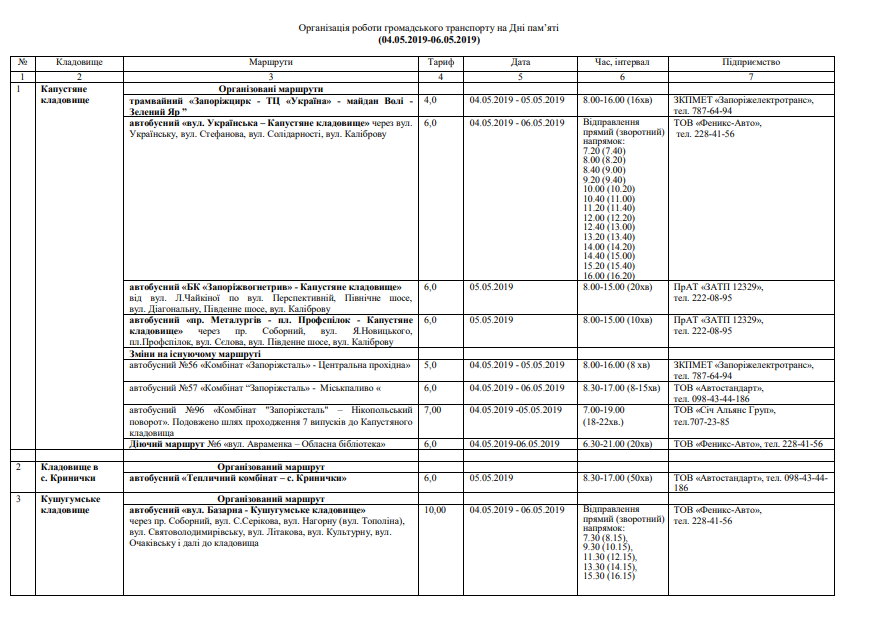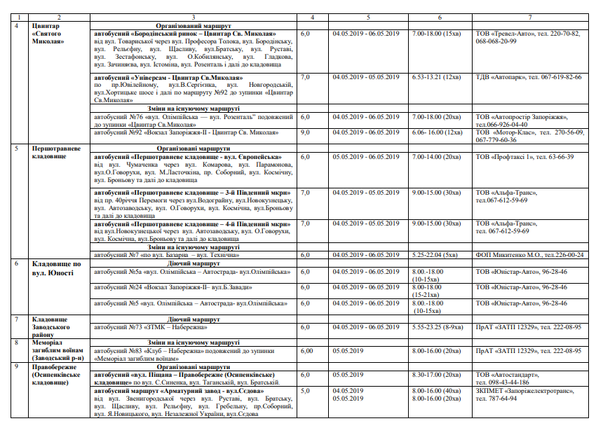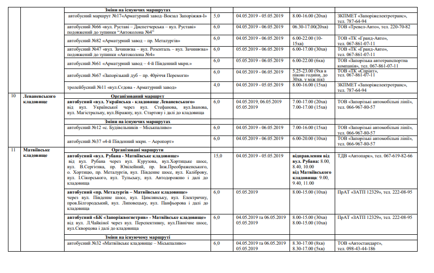Задля зручності громадян в Запоріжжі організують підвіз громадським транспортом. З розкладом руху автобусів можна ознайомитися нижче.