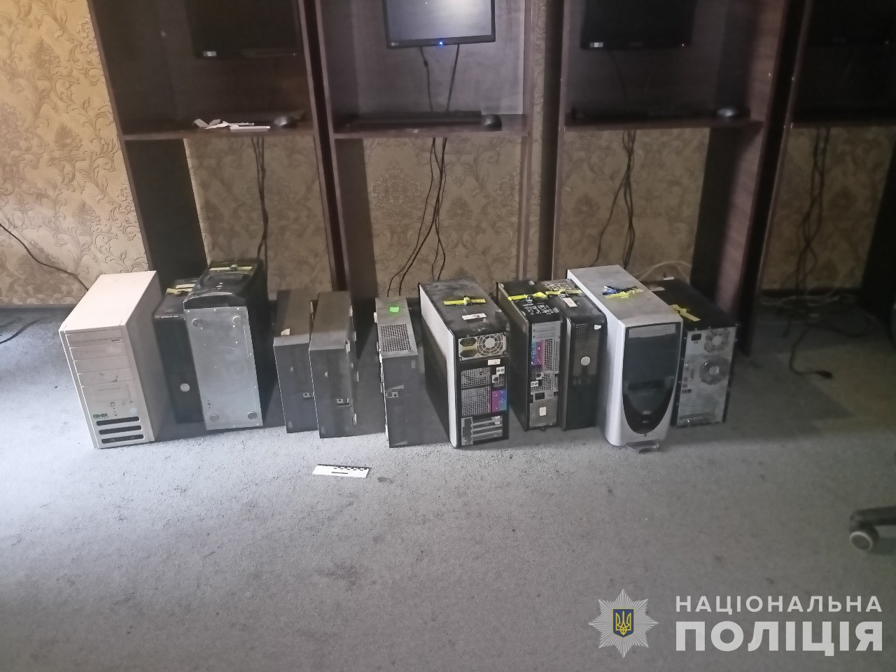 У Комунарському районі виявлено 10 системних блоків, 11 моніторів, таку ж кількість комп’ютерних мишей і клавіатур, принтер для квитанцій, відеореєстратор, 2 мобільні телефони, а також понад 4 000 гривень, отриманих ймовірно злочинним шляхом.