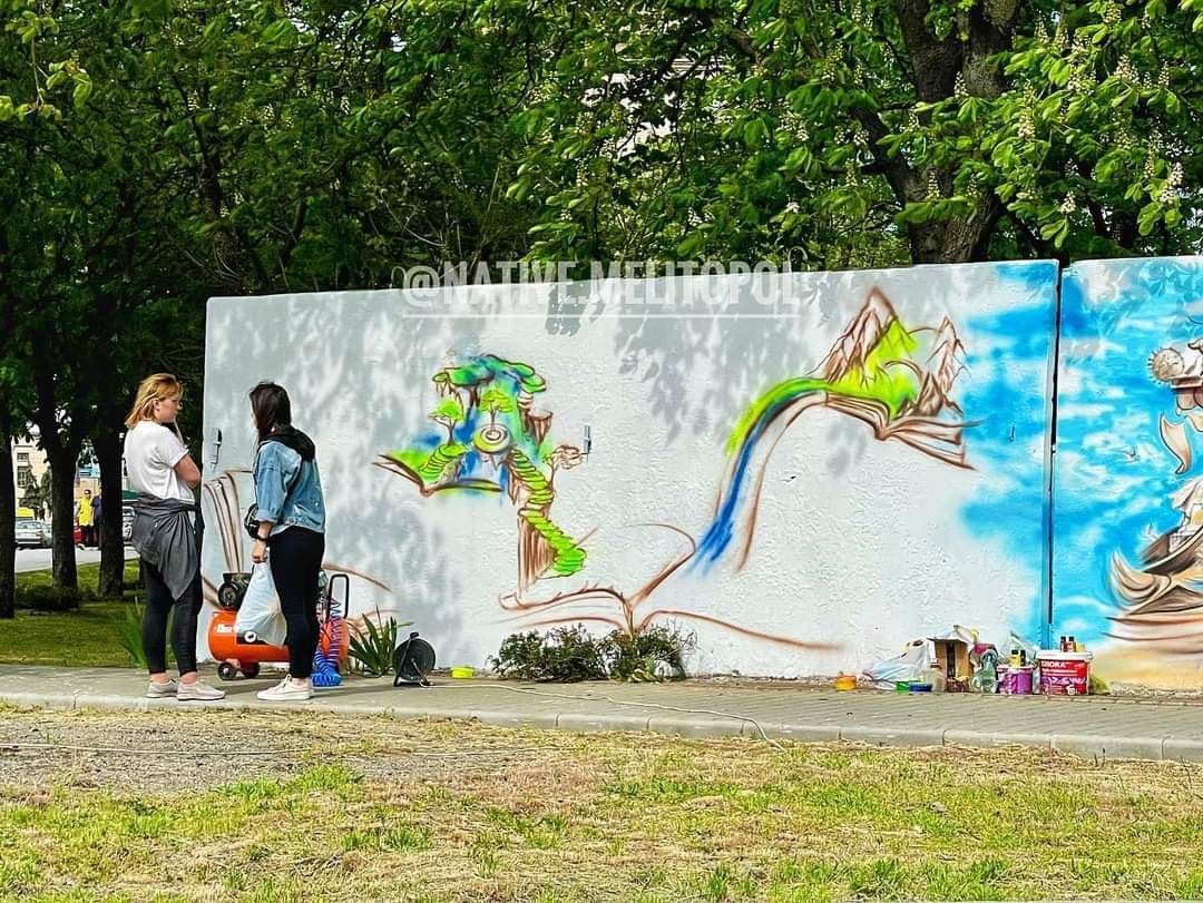 Чарівні зображення вирішили намалювати в центрі Мелітополя. Там малюють новий мурал, на якому бажають втілити в життя казкові фантазії. Знаходится він на перетині проспекту Богдана Хмельницького та вулиці Інтеркультурної.