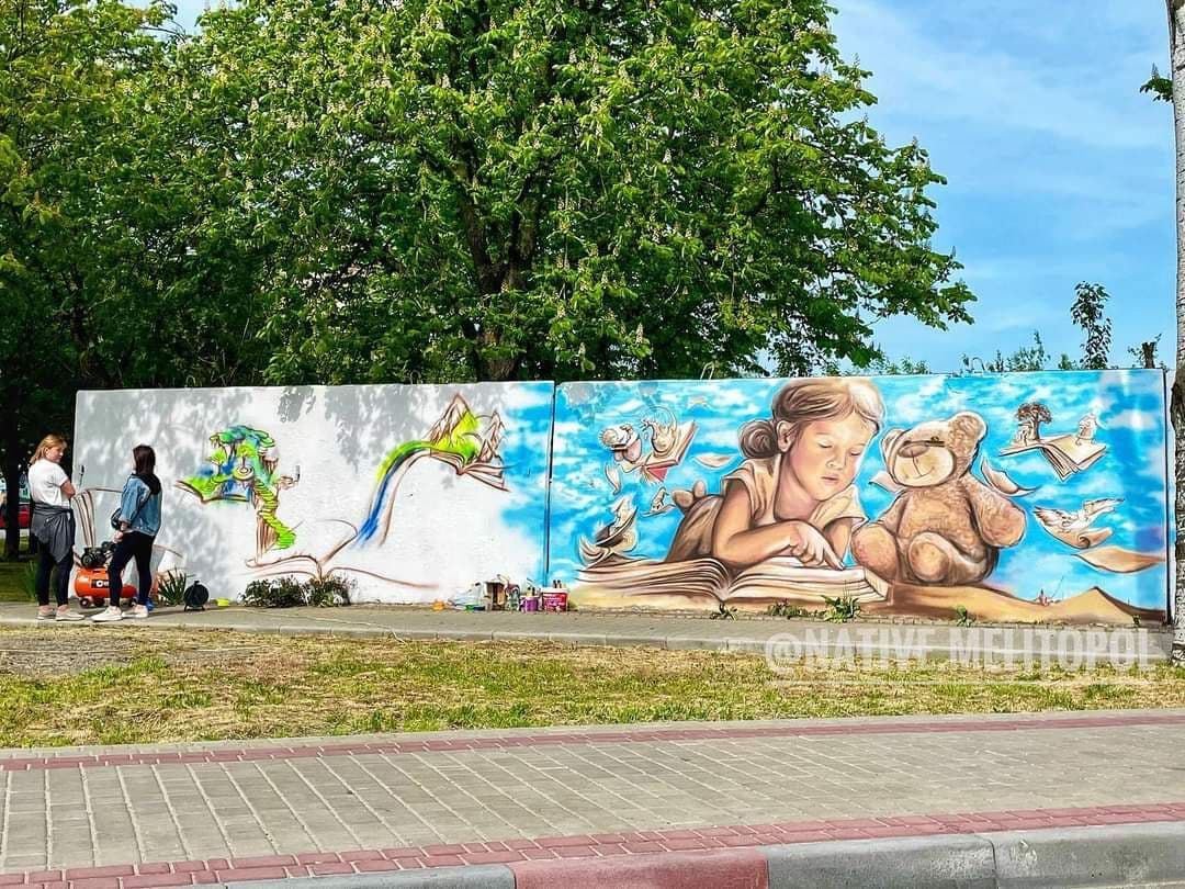 Раніше на плитах була зображена військова тематика, тепер замість неї з’являться казкові персонажі. Першу частину вже намалювали. Містяни можуть спостерігати за героїнею, яка читаючи книжку, переноситься в світ чар. Деякі місцеві мешканці обурились, що до свята Перемоги змінили збраження на вигаданих персонажів. Втім, таку думку розділили далеко не всі, частина мелітопольців навпаки милується новим муралом.