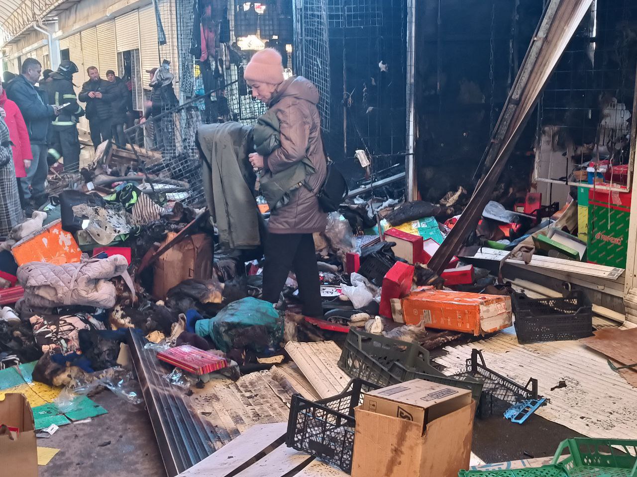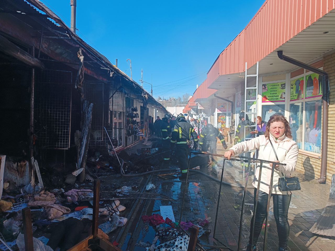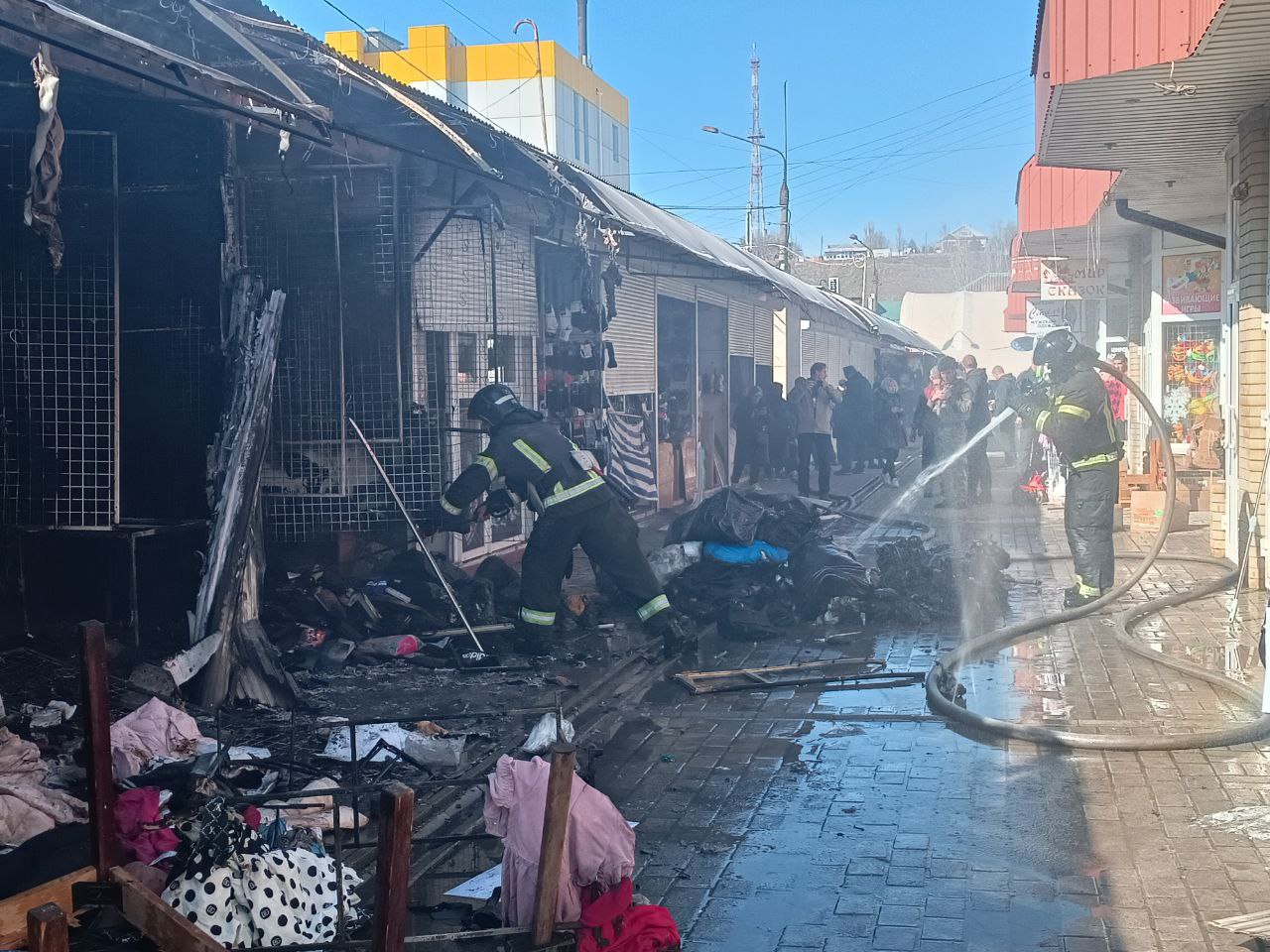 На території ринку загорілося близько 10 ролетних кіосків, в яких торгували одягом.