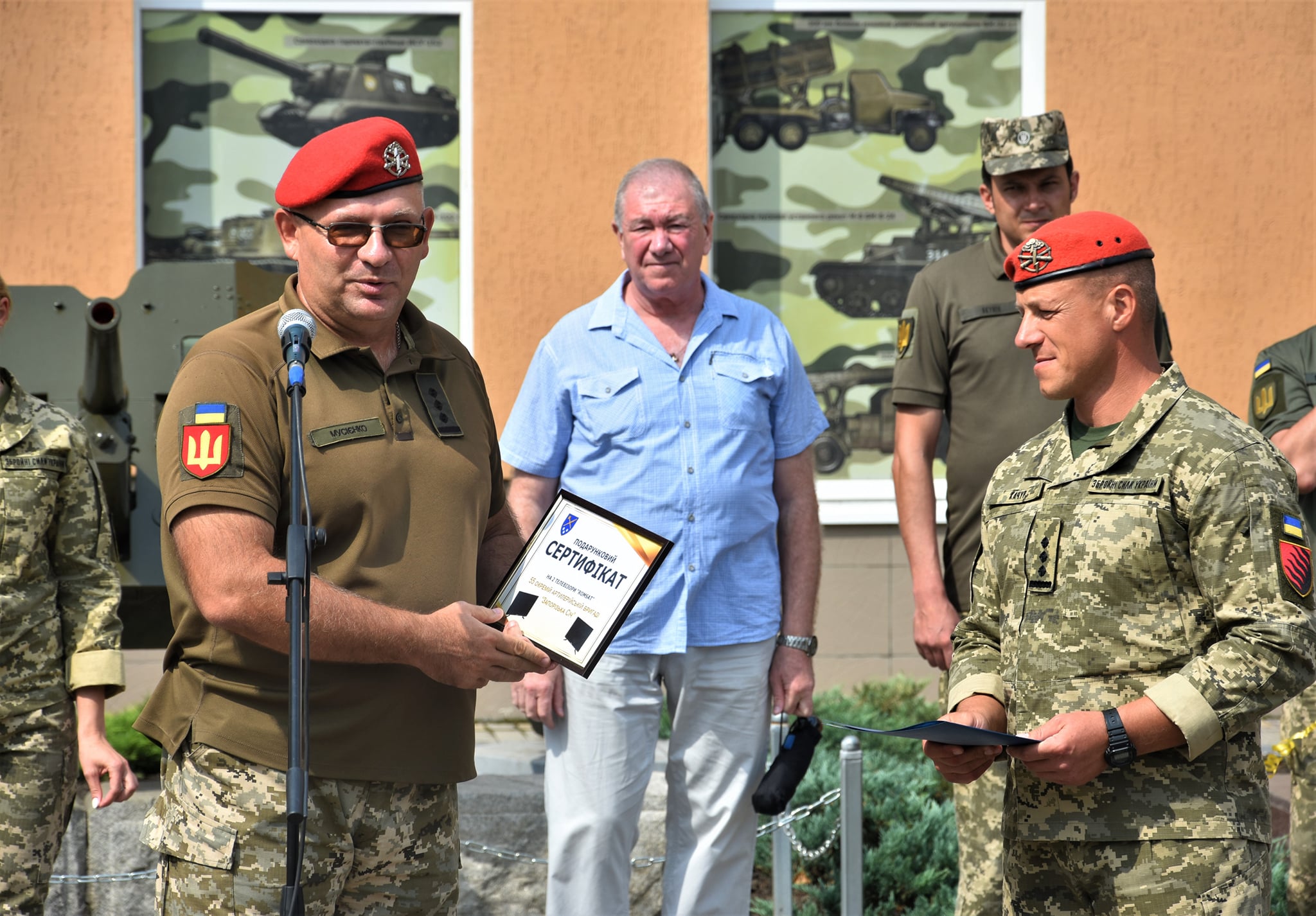 У пункті постійної дислокації бригади продовжились урочистості — військових нагородили відомчими відзнаками, подарунками, подяками та черговими військовими званнями. Вітали тих, хто нещодавно став до лав 55 ОАБР «Запорізька Січ».