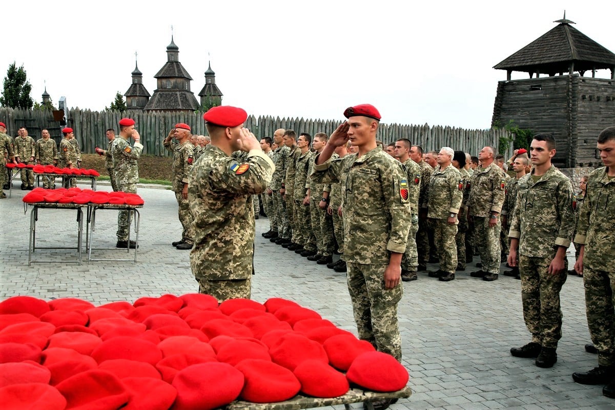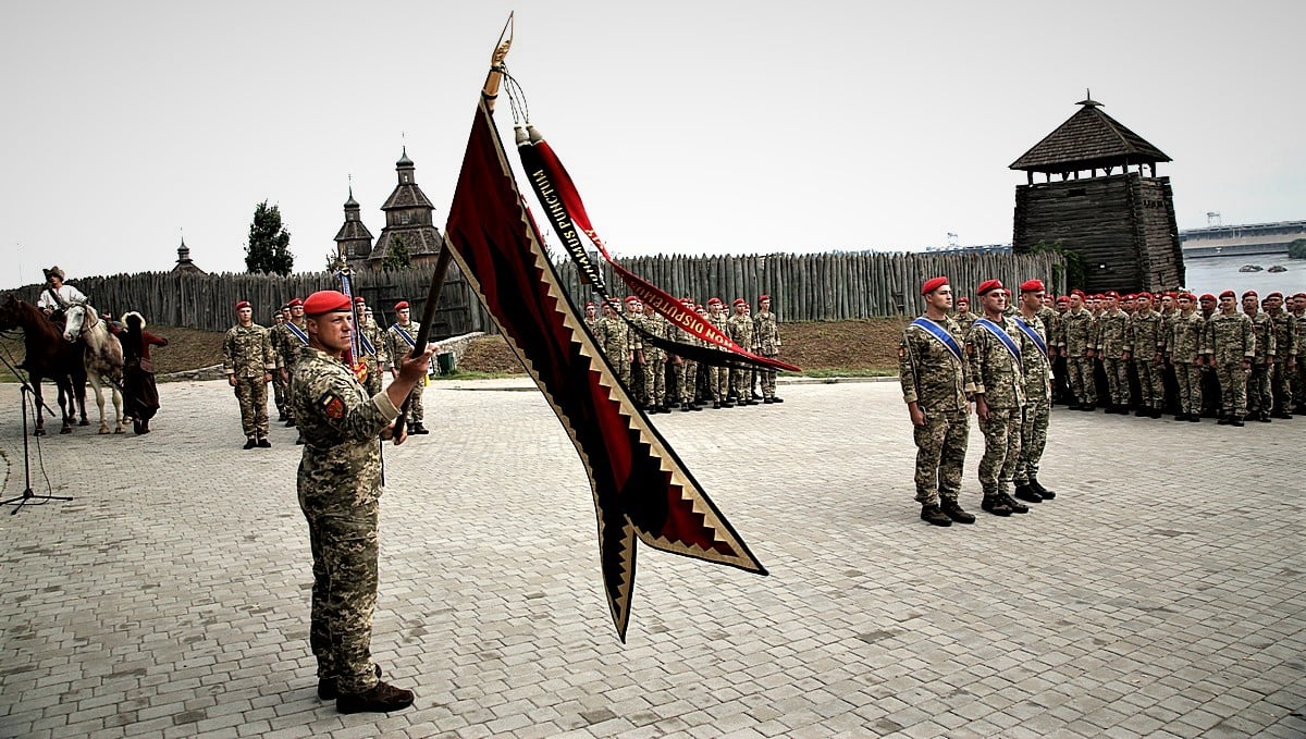 Учора на Хортиці близько 200 військовослужбовців отримали «полум’яні» берети. Також цього дня командир бригади Роман Качур отримав Мотиваційний прапор червоно-чорного кольору.