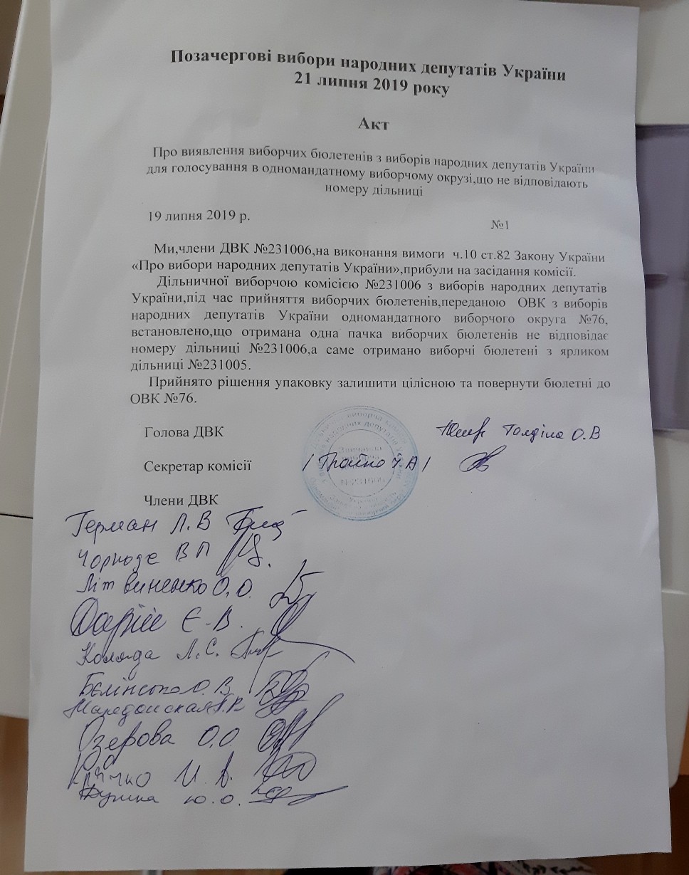 У неділю о 6:30 окружна комісія одномандатного виборчого округу №76 отримала від ЦВК Державною службою спецзв’язку 558 бюлетенів. Документи відповідають вимогам.