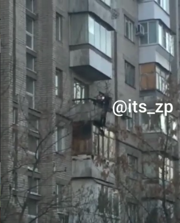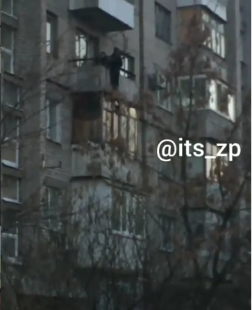Очевидці зняли відео, як чоловік намагався вистрибнути з вікна 4-го поверху. Невідомий переліз через огорожу й стояв там довгий час, постійно озираючись у всі боки.