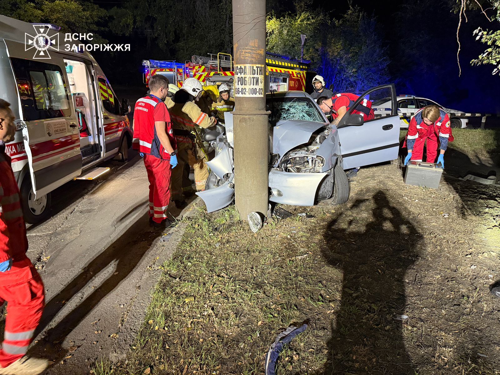В одному з районів Запоріжжя сталася дорожньо-транспортна пригода. Автомобіль влетів в електроопору.