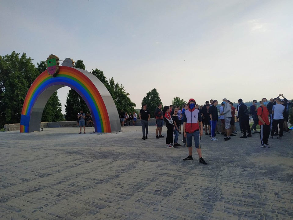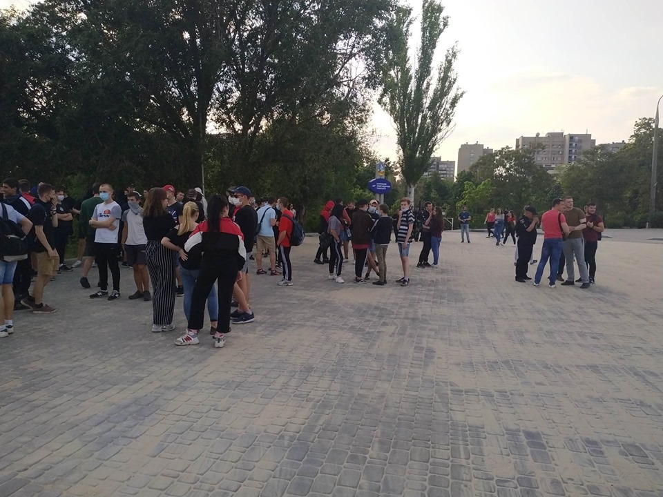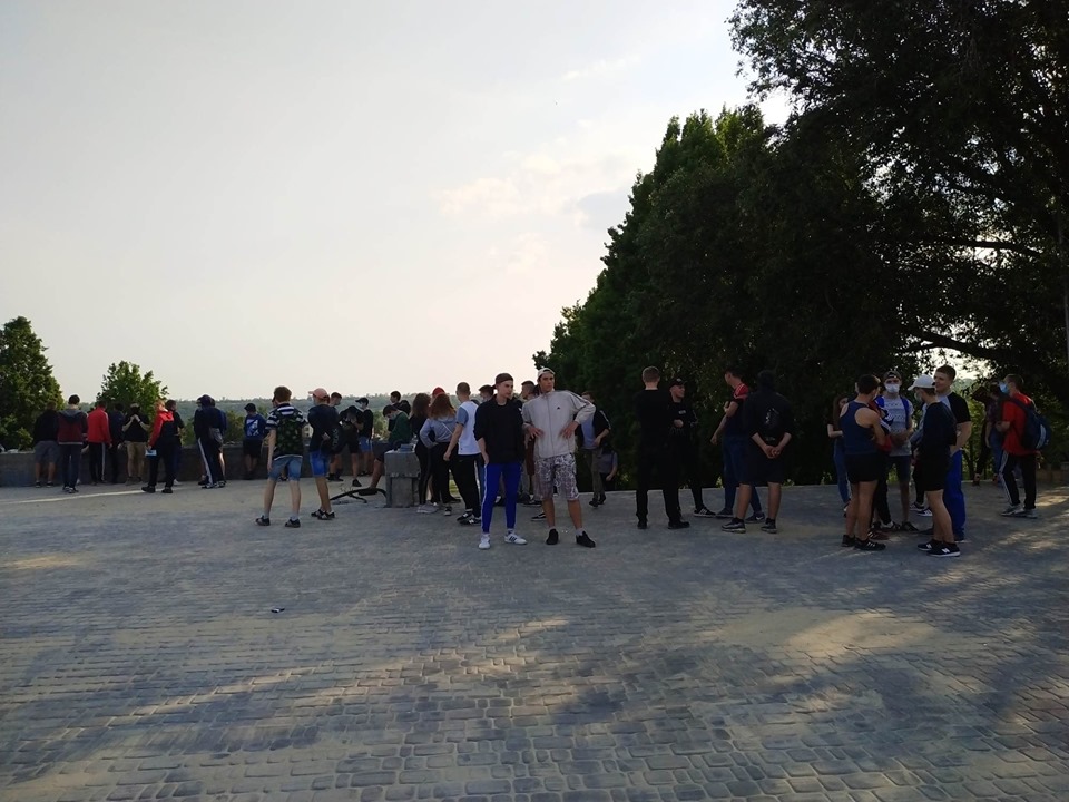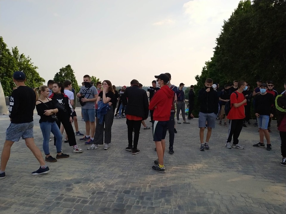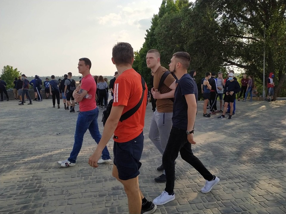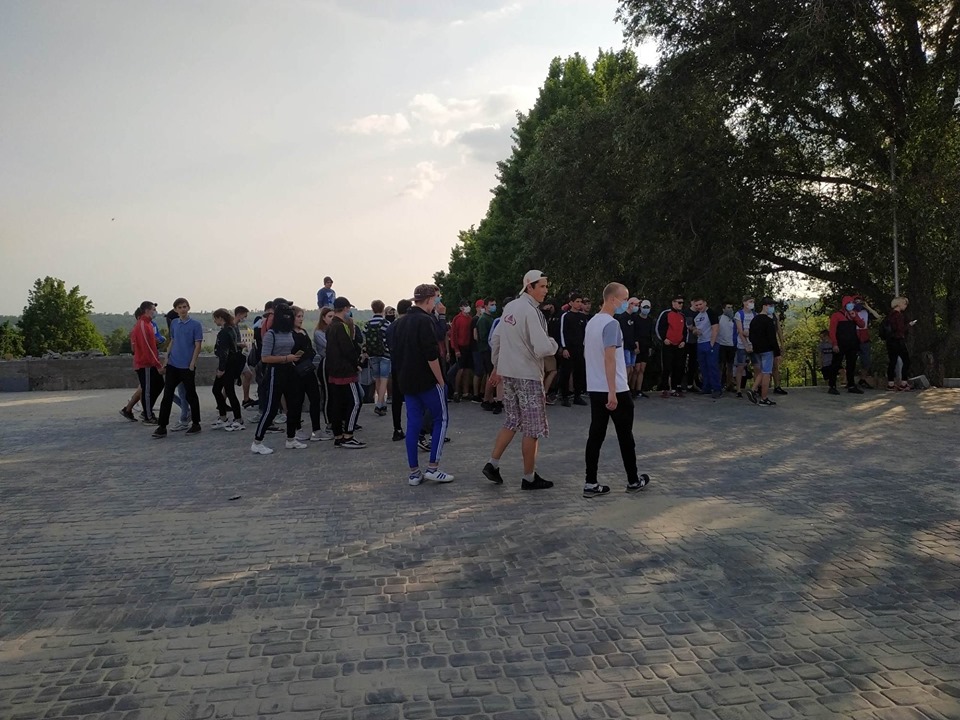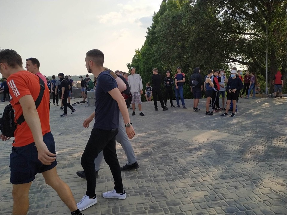 Журналісти «Forpost» в районі каскаду Райдуги побачили велике скупчення підлітків. Загалом зібралось трохи більше сотні чоловік. На багатьох з них були одягнуті балаклави та медичні маски. На питання, що вони тут роблять, лунали дві відповіді: 1) не хочуть спілкуватись з пресою. Балаклави задля уникнення ідентифікування своєї особисті; 2) особи стверджували, що вони просто прогулюються, а маски надягнули, бо хворіють. За особистими враженнями ситуація була дуже електризованою, деякі навмисно провокували групи людей в очікуванні бійки.