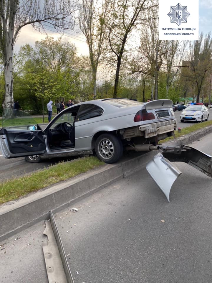 Копи почали переслідувати автомобіль з вул. Шкільної до вул. Перемоги. Порушник наражав на небезпеку не лише себе, а й інших учасників руху. В результаті водій не впорався з управлінням та скоїв наїзд на бетонну конструкцію на дорозі.