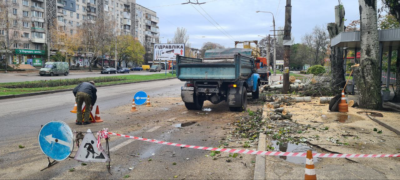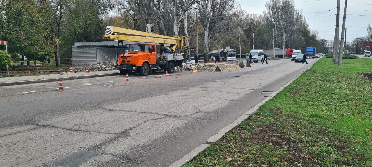 У Запоріжжі на одній із зупинок по вулиці Космічній, що в Комунарському районі міста, сталася неприємність — дерево впало, включаючи на проїжджу частину.