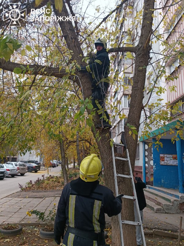 До рятувальників звернулися стурбовані жителі одного з районів міста Запоріжжя. Люди повідомили, що на відстані майже 3 метри від землі на дереві сидить кіт.