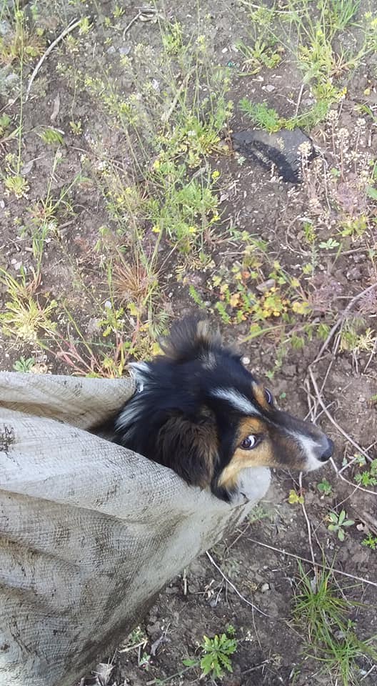 Одна собака змогла розгризти мішок і сиділа в ньому, застрягнувши до половини. Завдяки цьому чоловік і зміг побачити тварин.