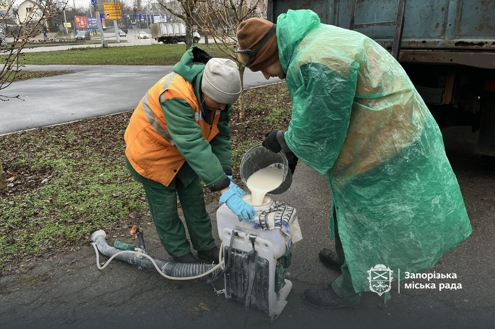 У Запоріжжі почали обробляти міські ялинки, щоб їх не вирубували до свят.