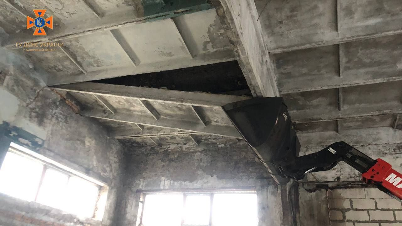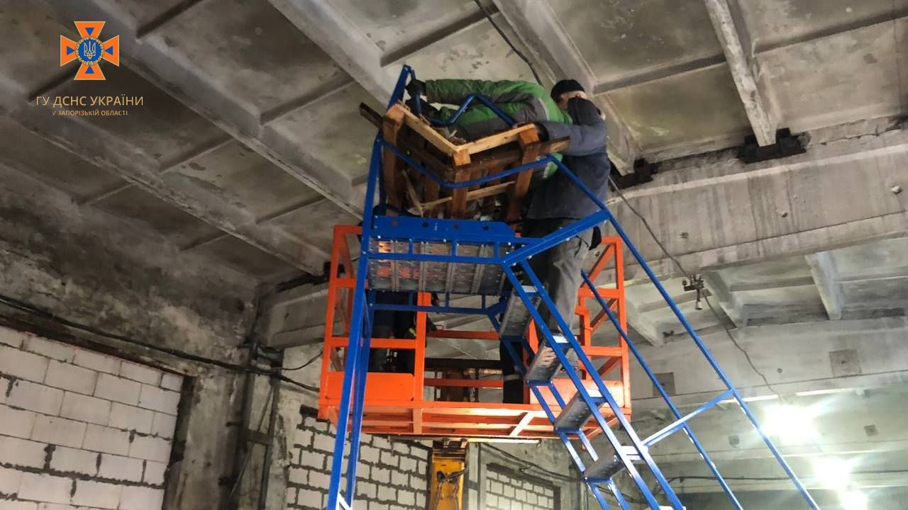 На місці події рятувальники встановили, що до їх прибуття будівельники, які тут працювали, використавши підіймальний ківш забезпечили опору, щоб запобігти подальшому зсуву плити, також доставили драбина, повідомляє пресслужба відомства.