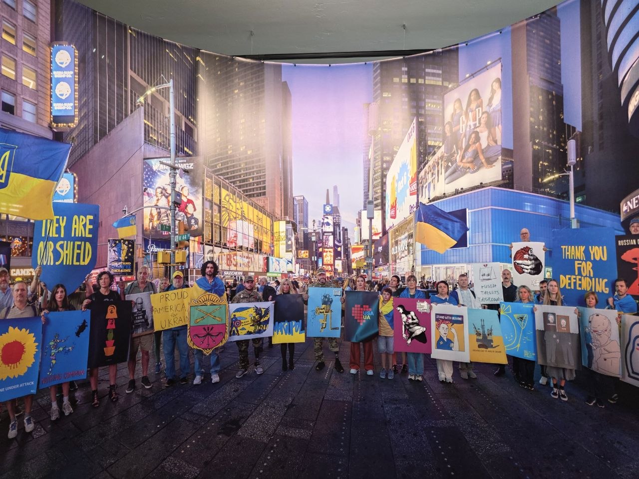 Автором проєкту став американський мультимедійний художник Філ Бюлер із Нью-Йорка. Разом із українською кураторкою Оленою Сперанською він створив унікальну експозицію, що поєднує документалістику, фотомистецтво та сучасні технології. Головна «родзинка» — циклорама на 360 градусів: панорамне фото мовчазної акції протесту на підтримку України, яка відбулася на Таймс-сквер напередодні Дня захисників і захисниць. Саме цю панораму в Запоріжжі називають символічним «порталом» на знамениту площу Нью-Йорка — відвідувач може фізично зайти всередину і ніби опинитися серед учасників акції.