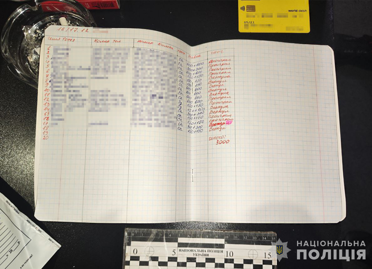 Підпільний гральний заклад був обладнаний комп’ютерною технікою, що надавала можливість здійснювати ігрові ставки через інтернет. Під час санкціонованого обшуку правоохоронці вилучили обладнання, банківські карти, та грошові кошти, загальна сума яких становить понад 10 тисяч гривень.