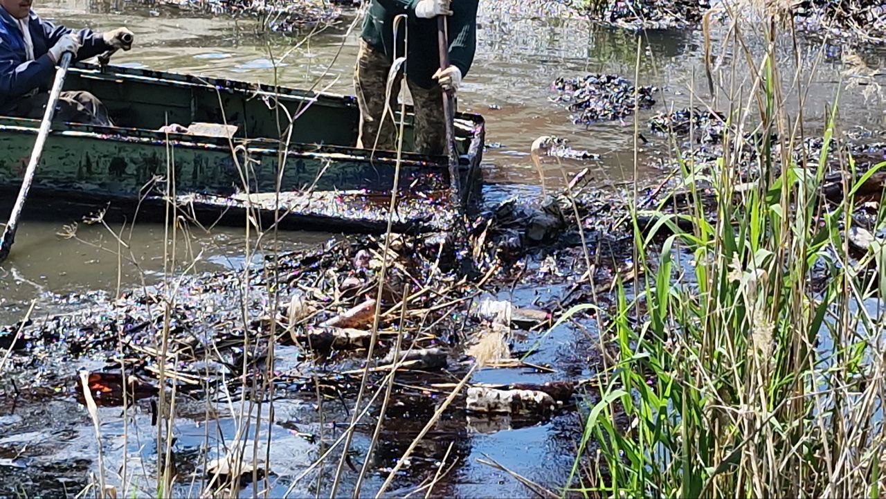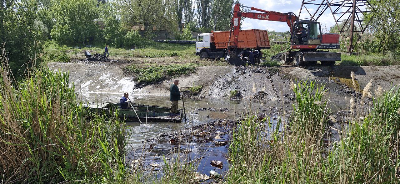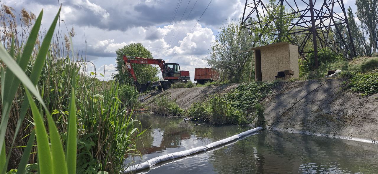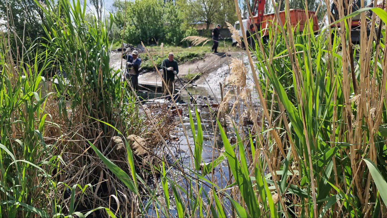 У Запоріжжі триває розчищення річки Мокра Московка від мазуту, який вкрив поверхню води щільною плівкою.
