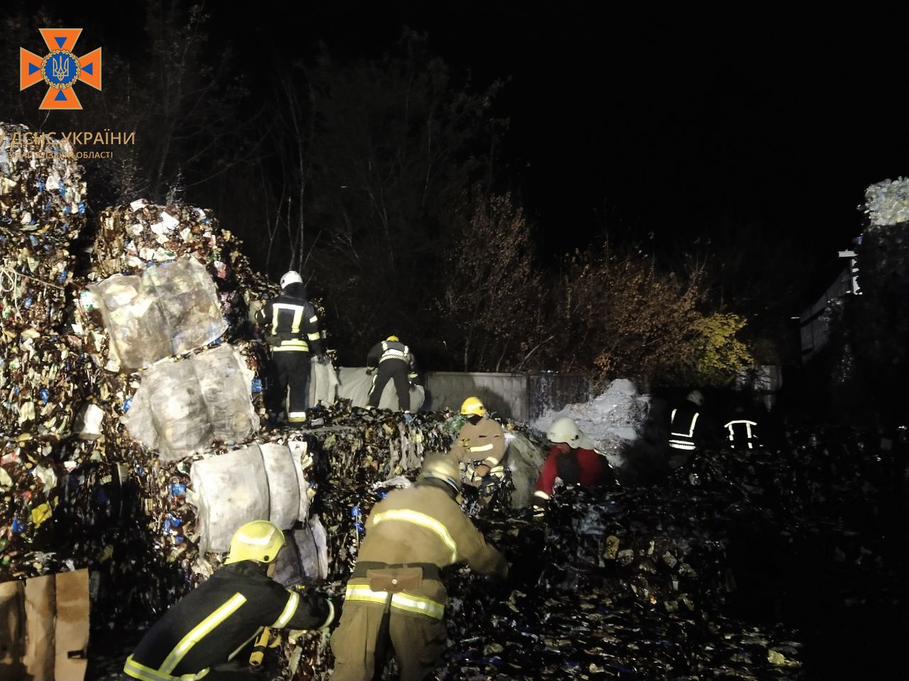 Сьогодні, 28 жовтня, пізно вночі в одному з районів міста на відкритій території загорілася вторинна сировина — пластикові пляшки.