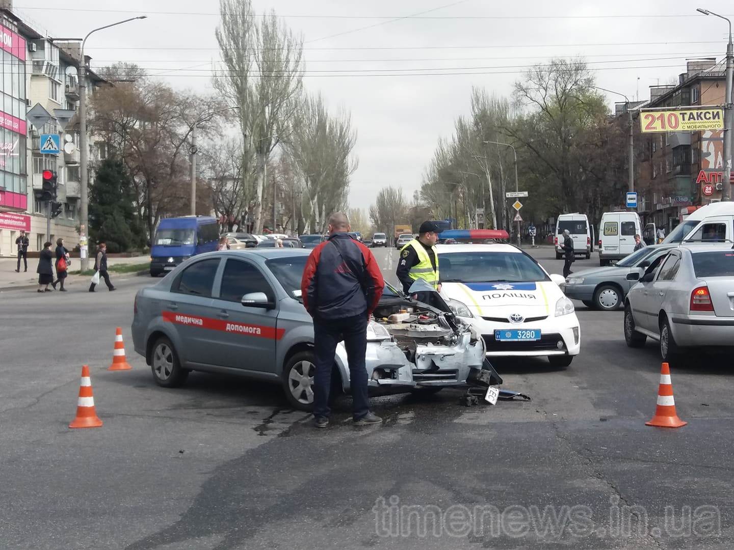 Сьогодні, 11 квітня, на перетині проспекту Соборного й вул. Української після півдня сталася аварія, зіштовхнулися «Шевроле» та «Опель».