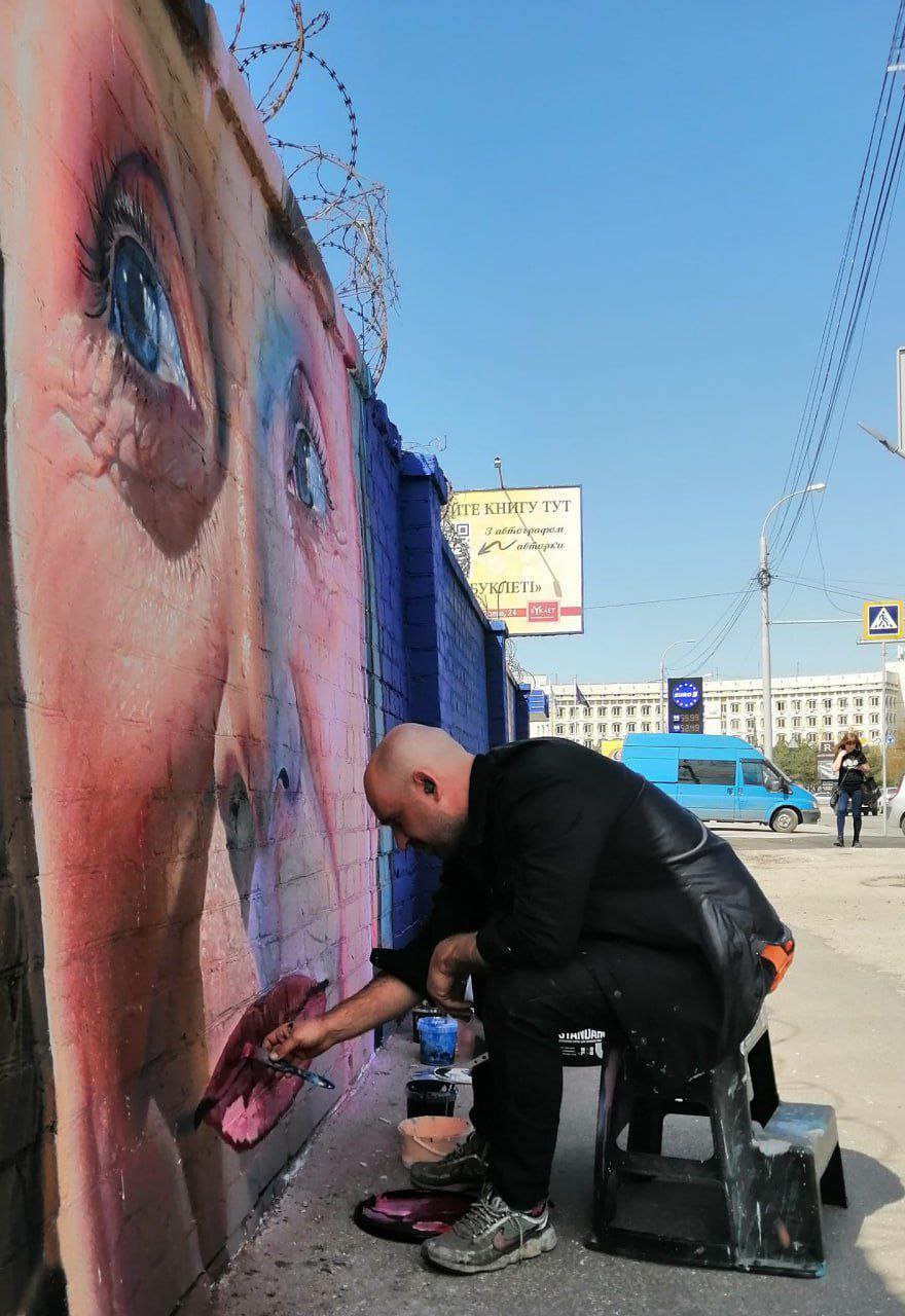 Новий мурал створюють на паркані біля зупинки «Каховська» у Запоріжжі.