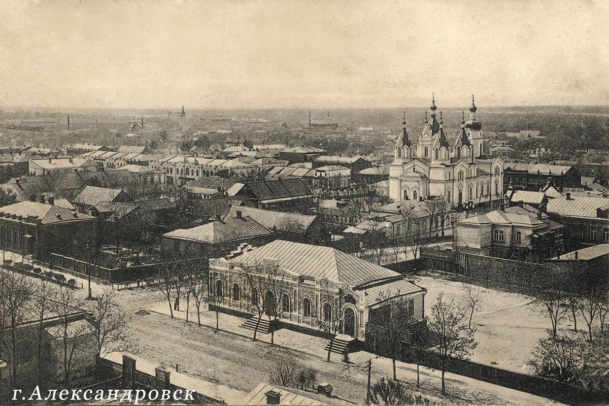 Зазначають, що торгові ряди на Базарній площі Старого Олександрівська розташовувались на місці сучасного скверу Піонерів у 1874-1905 та 1911-1943 роках. Торгові ряди мали три паралельні ряди лавок, обмежені проспектом Соборним, вулицями Благовіщенською, Поштовою та Базарною та були зруйновані під час визволення Запоріжжя у 1943 році.
